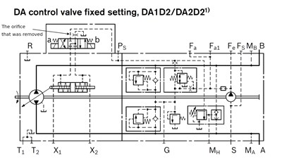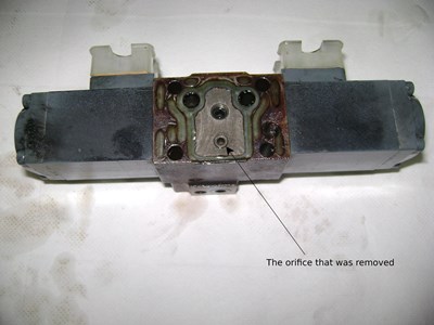 The problem was instantly solved by removing the orifice and the pump was immediately recommissioned, as the machine was needed badly. The client was advised to replace the directional valve ASAP. I don't think they ever did though. I know for a fact that the tug did at least three years of everyday service since that fix... Talk about not fixing what's not broken!